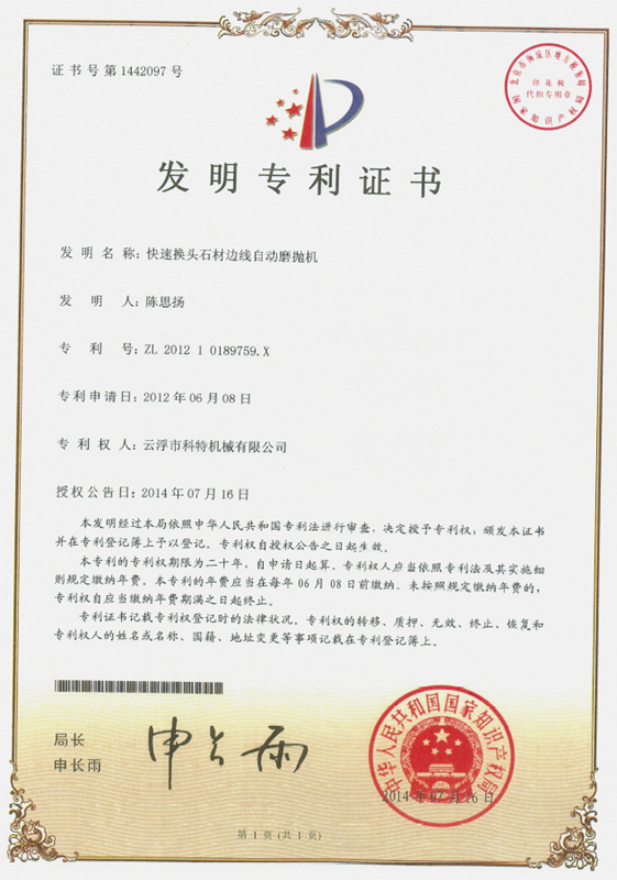 企業(yè)組建了“云浮市石材機械裝備工程技術研究開發(fā)中心”,并與高校和科研院所密切合作,致力于光機電一體化產品的研發(fā)、生產、銷售和服務。主要產品有框架鋸、全自動連續(xù)磨拋機、橋式自動切割機、全自動仿形石線機、數控金剛石繩鋸、裁切機等。產品具有自動化程度高、加工精度高和生產效率高等特點。產品除國內銷售外,還出口到歐美、東南亞、韓國、印度、中東、非洲、俄羅斯、澳大利亞等國家和地區(qū),深受用戶好評。“橋式自動切割機”被認定為廣東省高新技術產品,擁有發(fā)明專利1項、實用新型專利1項。
